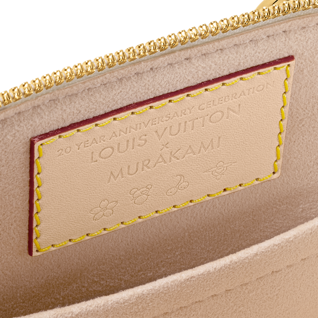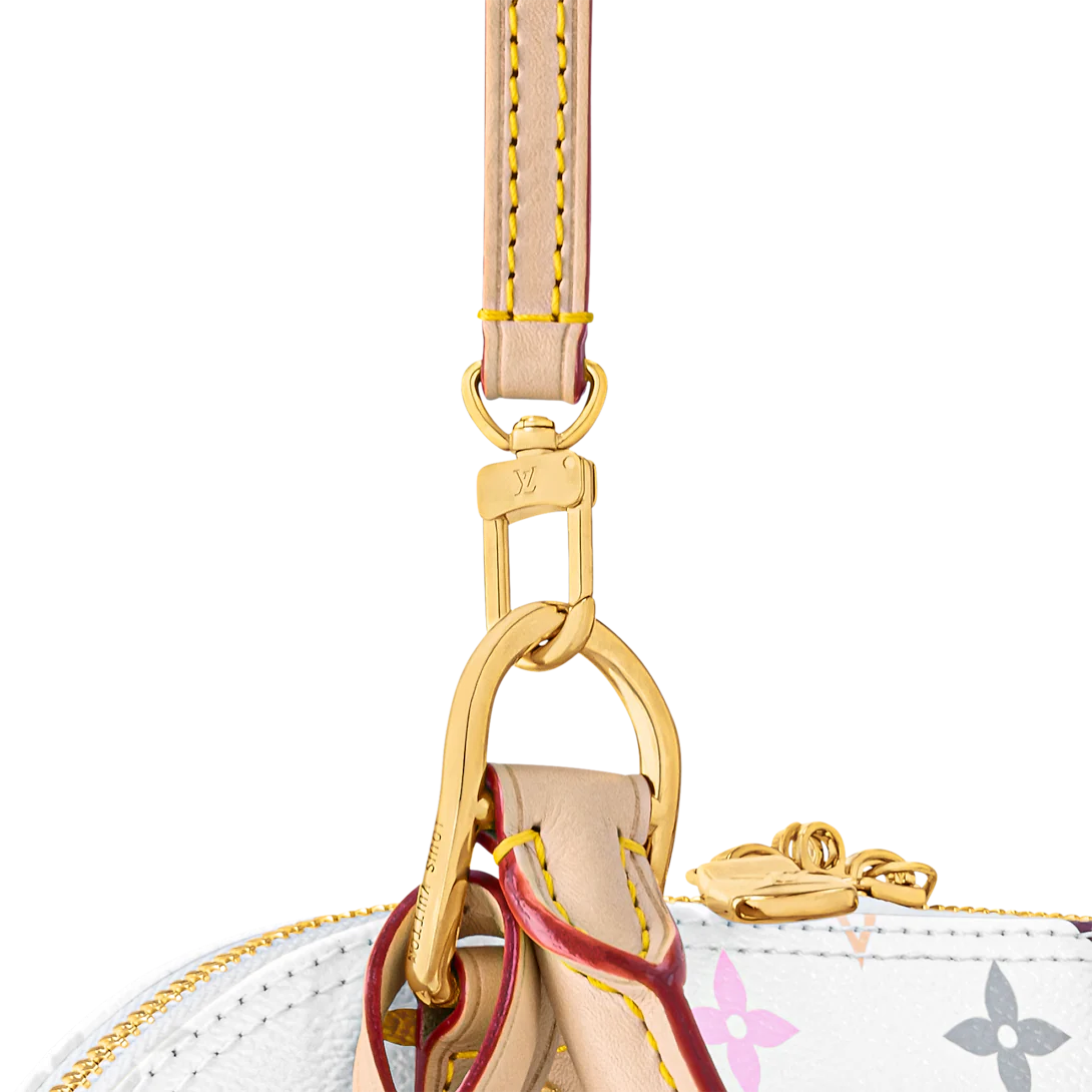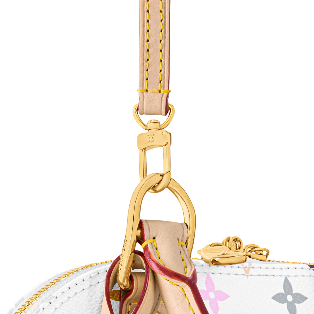Originally inspired by a 1930s Art Deco design, this edition of the Alma BB has a celebratory spirit in the Louis Vuitton x Murakami collection’s multicolored Monogram coated canvas, which draws on the Japanese artist’s playful palette. The House’s natural cowhide leather adds an emblematic touch to the refined Toron top handles, the bottom, the removable strap, and the exclusive LV x TM keybell.